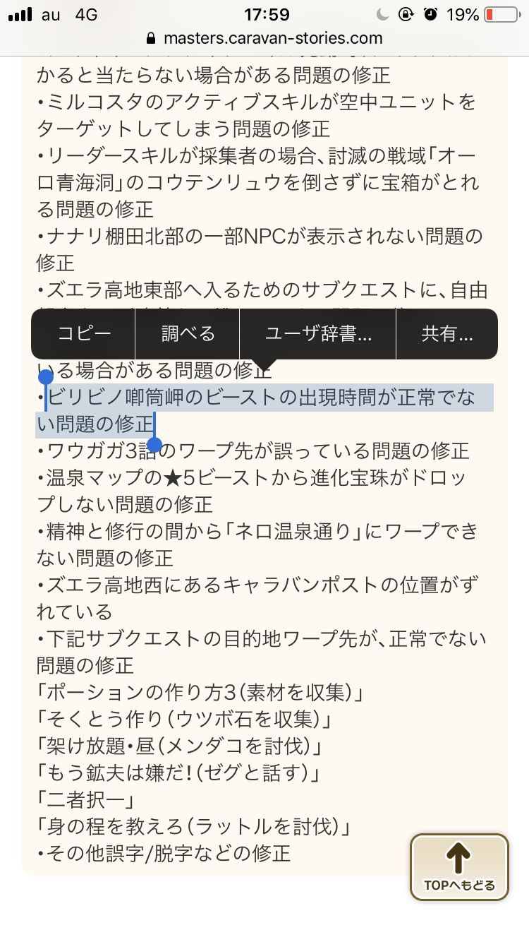 でも、そんなこんなの何より嬉しはちゃんと不具合修正として書いてくれていること。キャラストの運営はビーストに関するサイレント修正多いからなー… いつのまにか湧きバグを直していたり、ドロップ内容や確率が変わったり… 勝手に変えられるとせっかく集めたデータの信頼性がなくなるから、変わったのなら変わったと今回みたいに報じて欲しい。どう変わったかは勝手にこっちで調べるから。