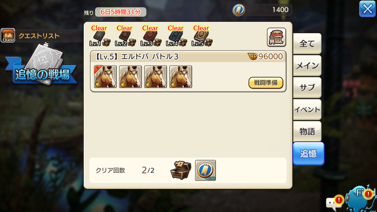 追憶LV5は回復多めで普通に行けたのが意外でした。