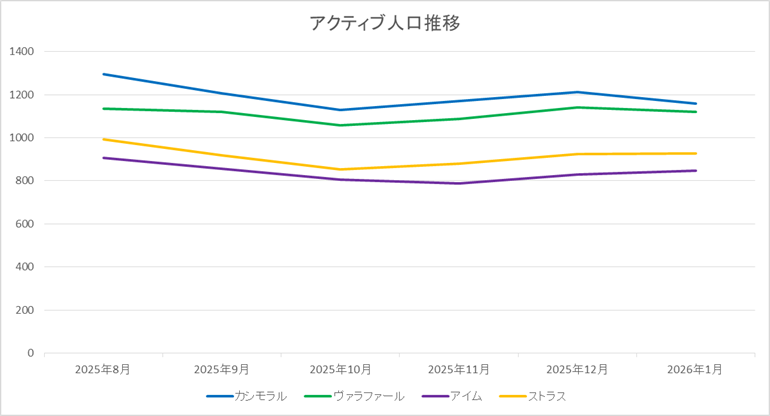 カシモとヴァラは減ってますが、アイムとストラスは増えるという珍現象が起きました。