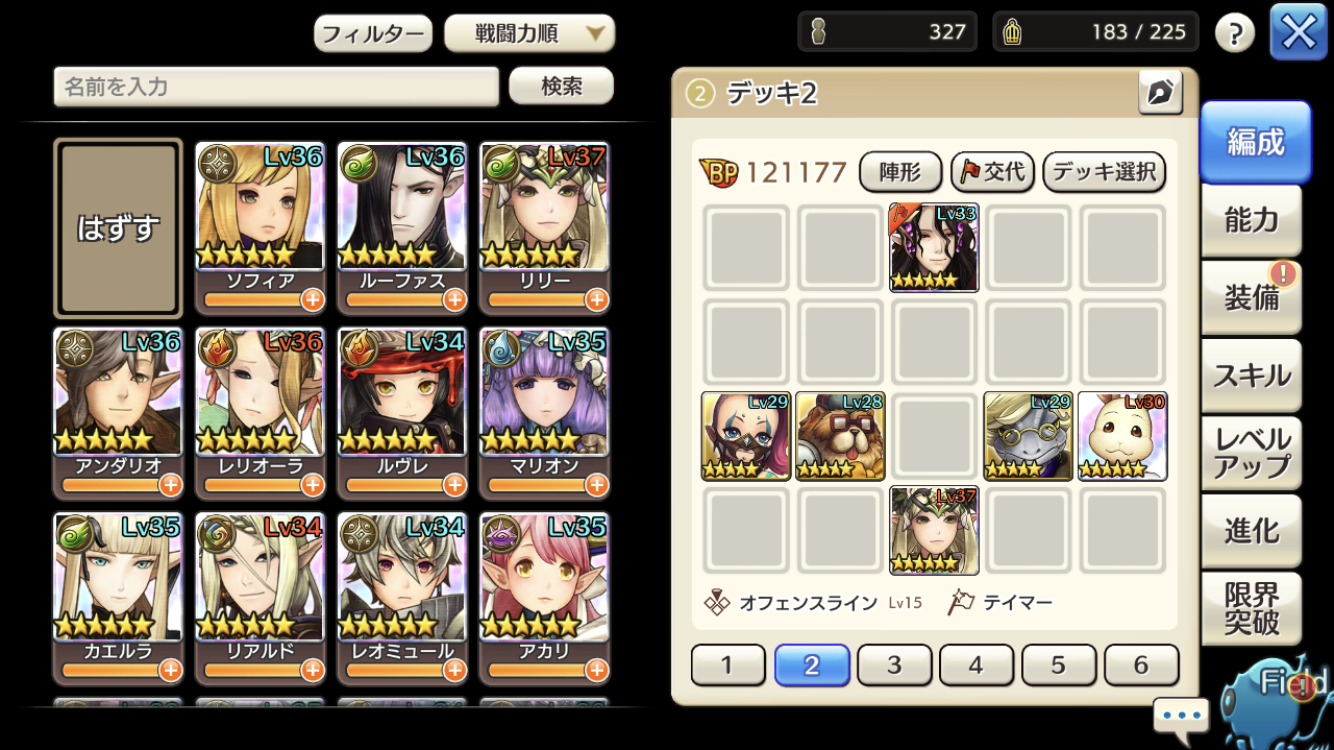 ・エルフアバ⭐︎6/6/5(今回の火力はエルフアバのみ!ASの引き寄せが有能!!終始引き寄せれば、単体NSを補い、近接の敵をタンクから引き剥がし無力化できます)