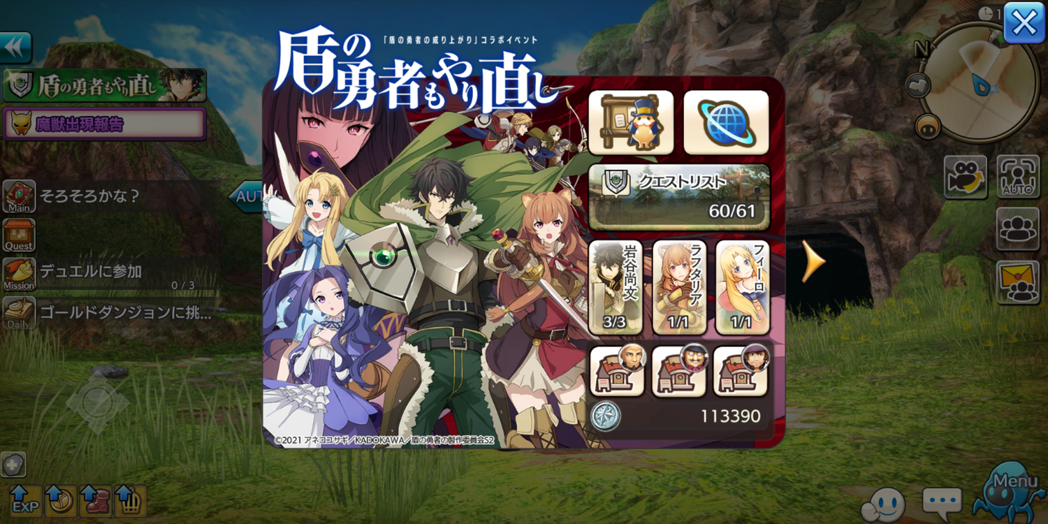 先週までライトノベル原作?の盾の勇者のやりなおしイベントありましたね~