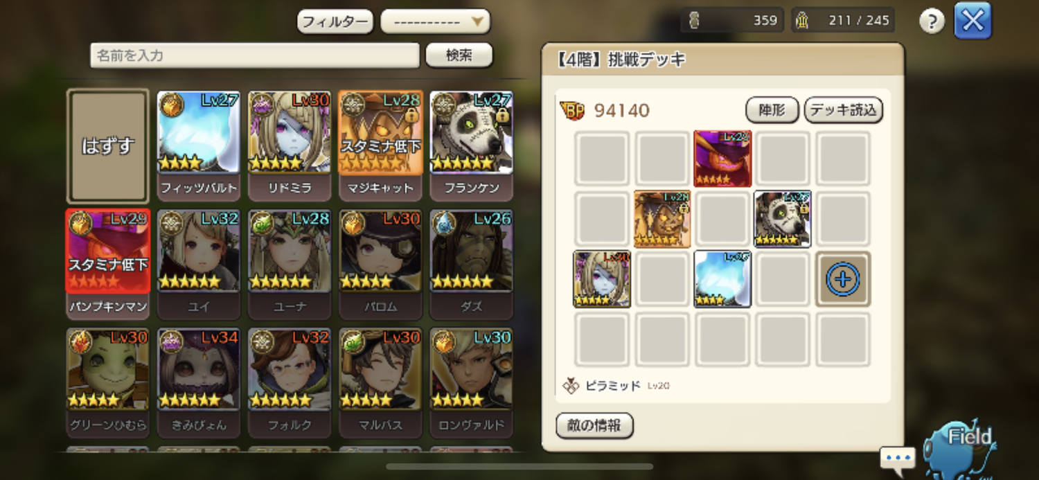 10階をクリアするため、キャラを絞って育てていこうと思います。