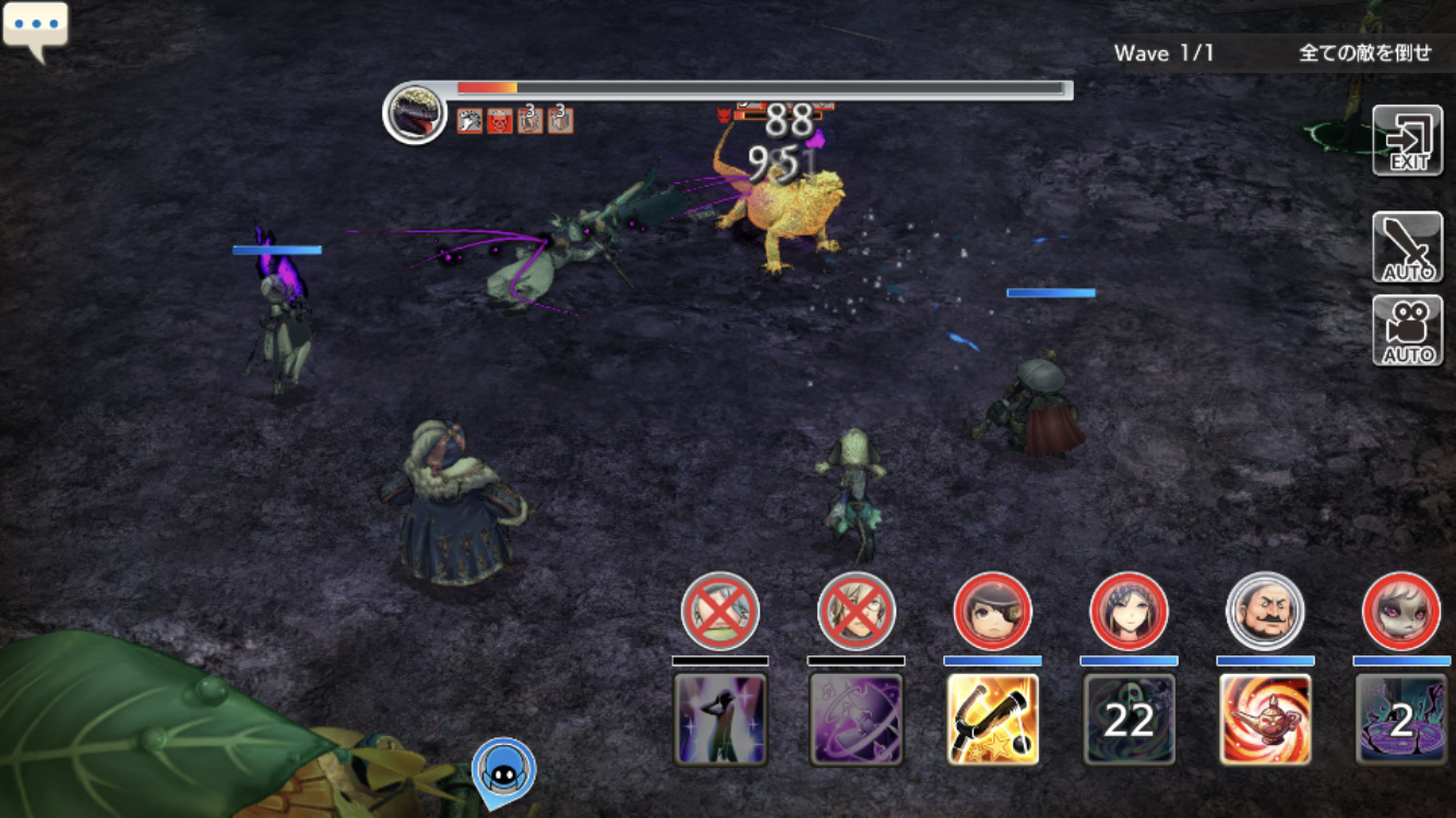 うちのドワ君はmain☆5持ちなので、AS打てば固まってる皆を攻撃出来ます。それで、雑魚は倒れたんですがイグアナだけ残りました...