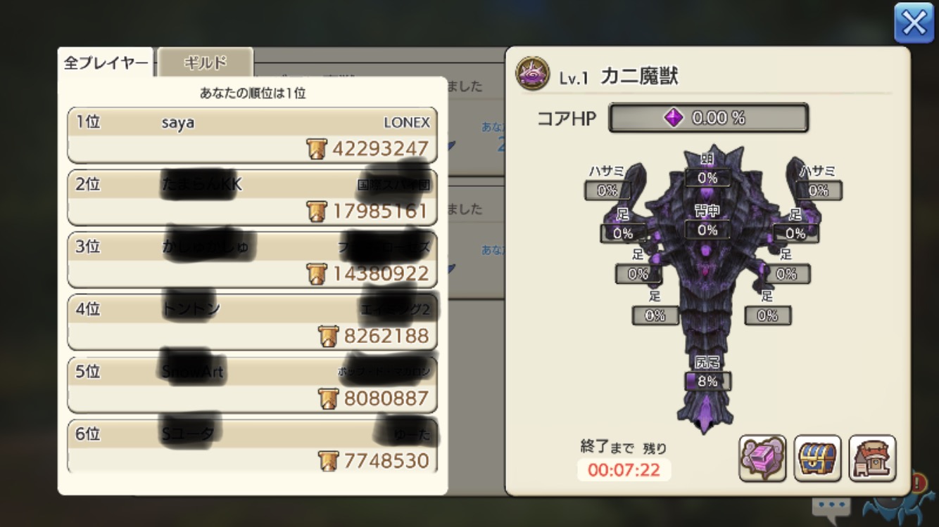 2018/12/02 12:38 公開 1周年福袋とカニさん 雑日誌 レイド スクリーンショット レイドのカニレイドで初めて1位取れました〜(⌒▽⌒)イヌはまだですが、カニもイヌも2位が最高でしたが遂に達成です!2位の方ともポイント差が結構あったので満足です^_^イヌは干支だから今月で終わりだろうから、何とか達成したいなぁ〜あとすっかり忘れていた1周年福袋100個開封をしたところ、お守りが2個でした!当たりな方か分からないけど、お守りは嬉しいです(°▽°) saya★༄ω リンクをコピーしました 前の旅日誌 旅日誌一覧 次の旅日誌 コメント