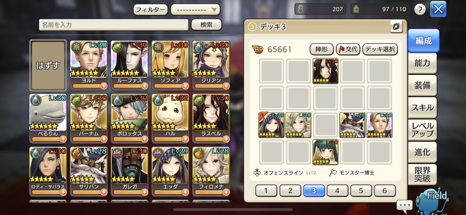 あとは経験値ダンジョン入って、とりあえずレベル30まで上げるのと、サリバンとフィロメナにダメ減ルーンはめればいけるんじゃないかなあ……。移動も気にしつつ……。ラスベルの場所どこがいいのかなあ。真ん中上にじっとしてるんだけどな、ラスベルさん……。