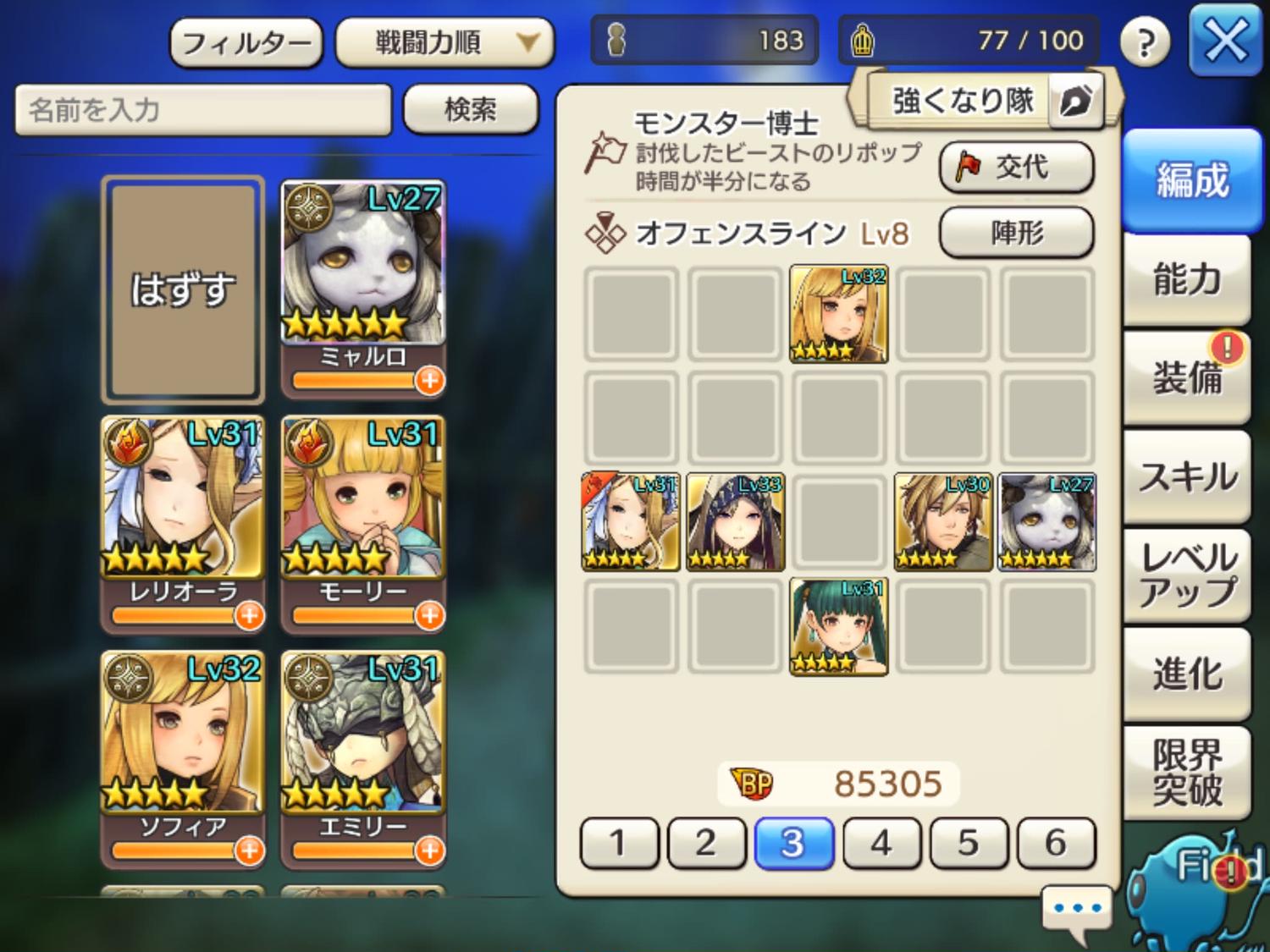 時間切れになりそうだったので、魔攻上げのためにアルフレッドにしました。