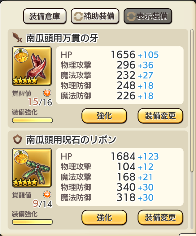 2021/10/29 03:09 公開 パンプキンヘッド限凸MAX 雑日誌 スクリーンショット どこで使うんだよ、とか戦闘に時間かかるの嫌いだし、とか思うけど昨年から育ててて、★5装備もあるもんだから、なんとなく。でも基礎ステが弱々なんで・・・6進化 Lv32でも物攻魔攻物防魔防どれも2000もなくモグモグする前にだいたいやられちゃうのよね。 トヒロア リンクをコピーしました 前の旅日誌 旅日誌一覧 次の旅日誌 コメント 1 くろさま ID: 2fse7gw3qy4x NSで吸い寄せて自分から死にに行くスタイルのお化けの手本みたいな元アンコウ。正直魚類も使う気起きないんだけどハグレコアトル戦でだけ活躍した功績で今も手元に置いている。スキルレベル5にしてあるし単体相手なら使いどころもあるかもしれないが、 2021/10/29 07:24 2 トヒロア ID: 3utmcwiux794 >> 1 そうそう。私もハグレコアトルをこれて突破ました。そのために当時ではハードル高かったスキルの知力上昇をLv5にした。 2021/10/29 07:53