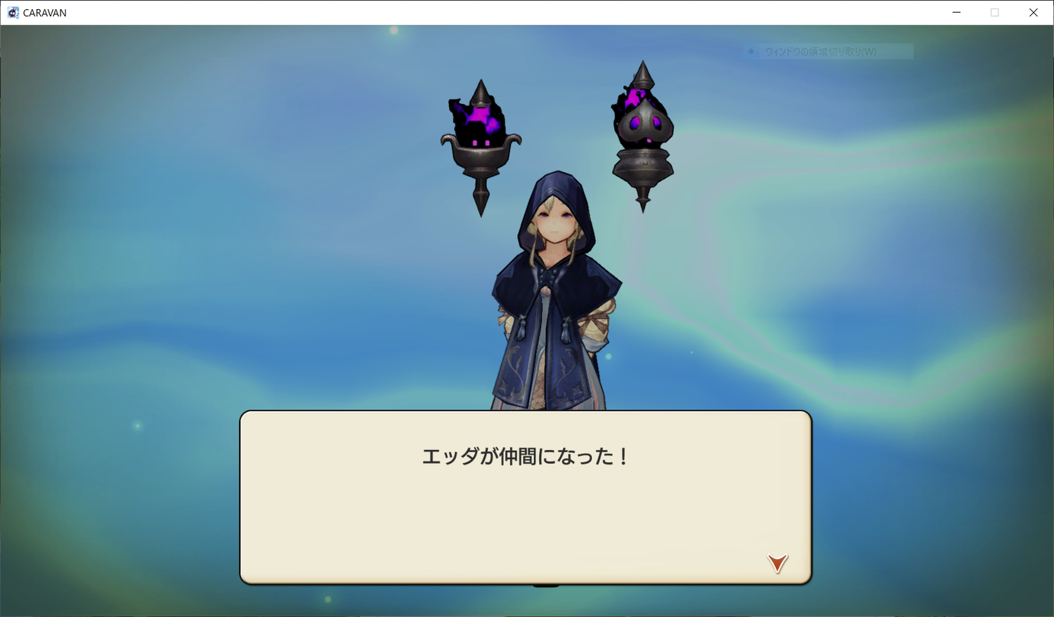それと、街中で倒れそうなエッダという少女を発見、キャラバンで保護しました。エッダのイベントを進めるために、キャラバンの様子を見てみよう…