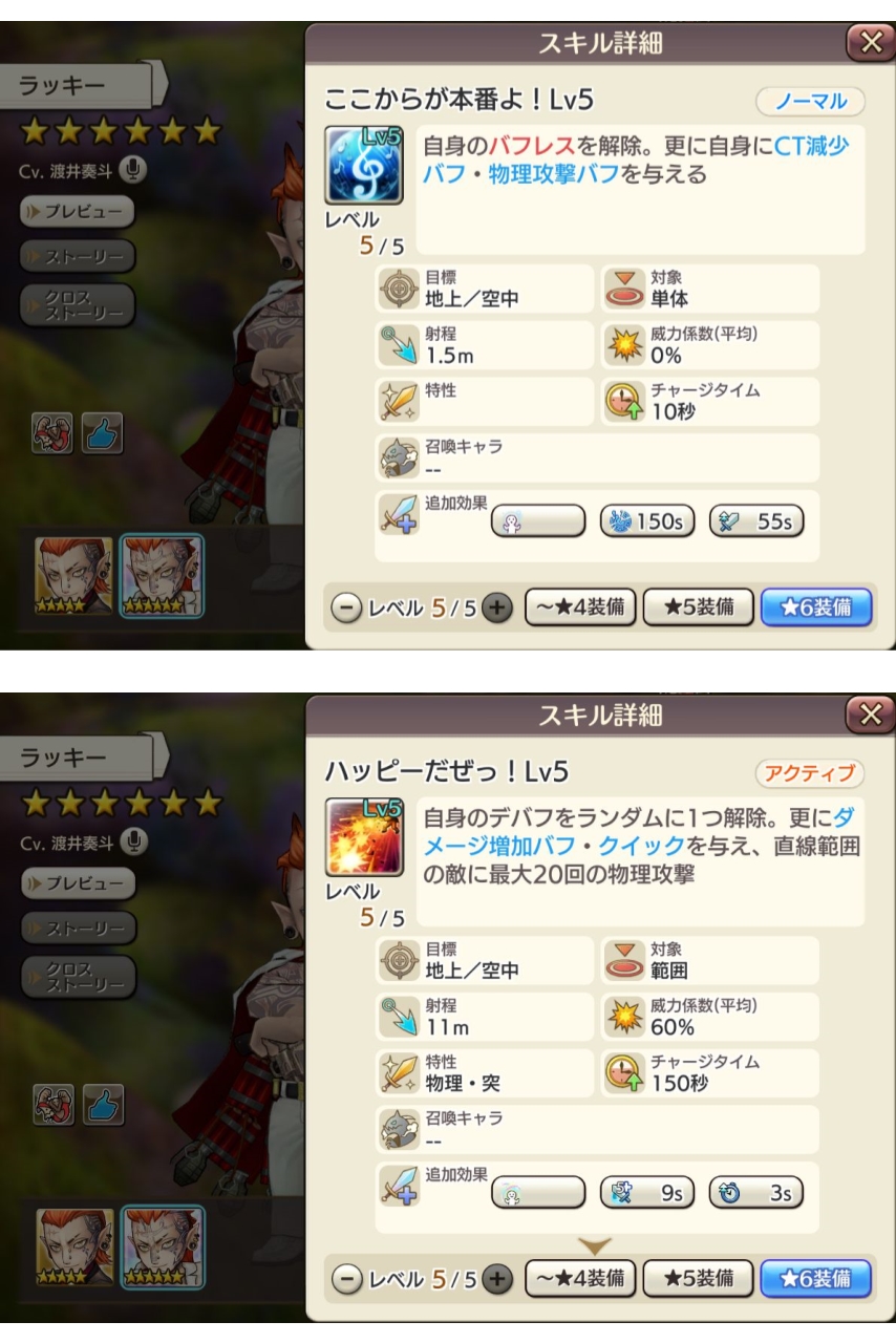 この効果時間なのですが、通常のスキルだと持続時間なので、CT減少の場合どういうことになるのだろうと疑問だったのですが、ラッキーのCT減少を見て理解できました。恐らく減少する時間ですね。