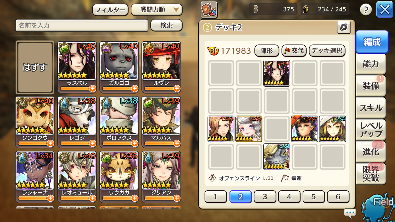 あと色々編成試してみたのですが、幣キャラバンだとガルフスタン入れないと開幕が乗り切れませんでした。