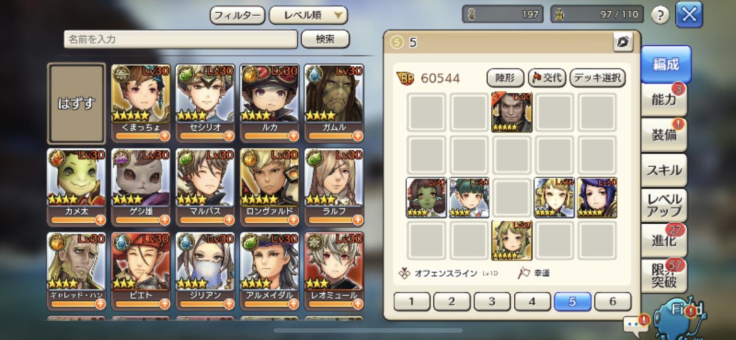 レベルは30だけどレアリティ低かったりスキルレベ1だったり武器が☆3止まりだったりで