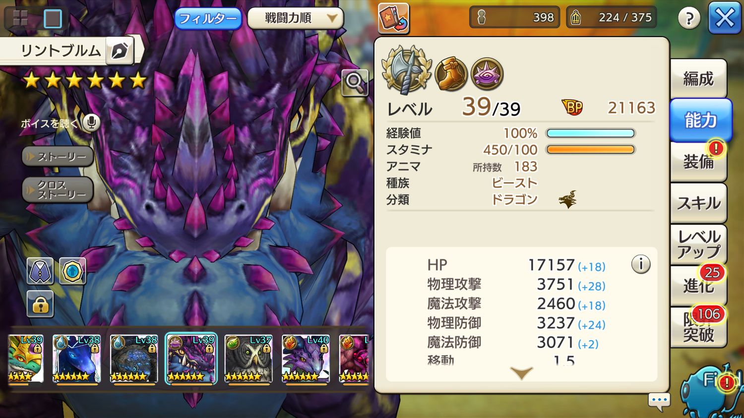③ガブ太郎ことリントブルム君。★6装備無いと4000はキツそうだ(T_T)