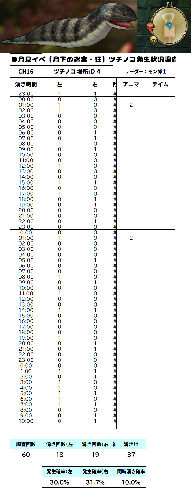 で・・先週からの「月見の迷宮:狂」に湧く「ツチノコ」の出塁率を調査。