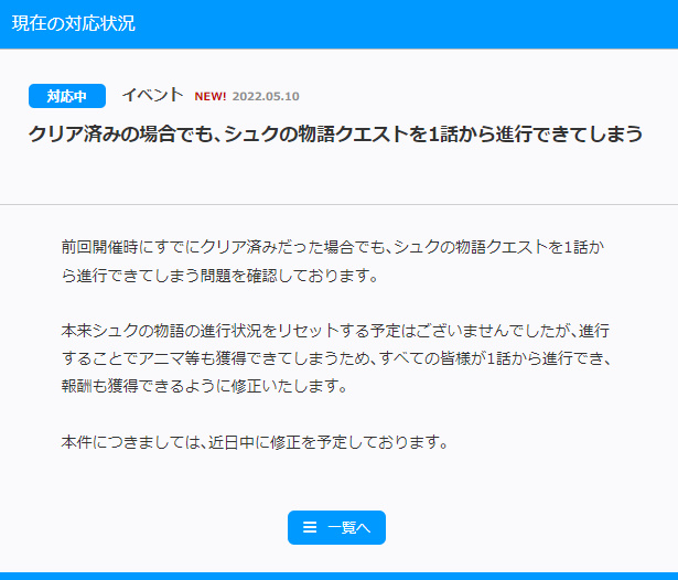 ※「シュク」の物語クエストの進行状況はリセットされておりません。