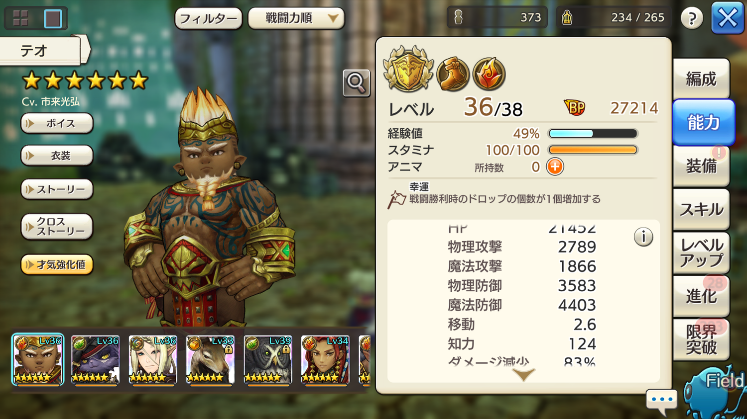 ちなみに、近接アタッカー防御力は優位属性(水)であれば2200程度火属性得意LV5&ダメ減34のバフ盛りで範囲は凌げます。