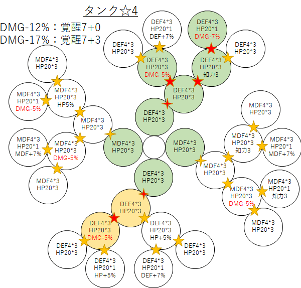 タンク☆4装備だとダメージ減少17%が現実的な範囲で狙えるので