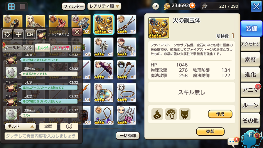 で、「あ~、アースストーンか・・・全然使ってないけど、まぁ持ってるやつだからラッキーラッキー♪」と装備させようとしたんですね。