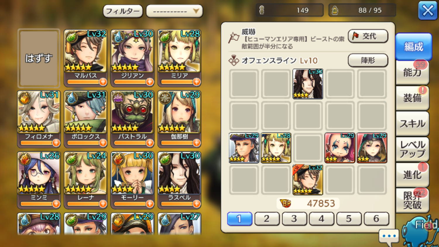 ミリア☆5メインサブ共に☆5魔攻6%。N4A3P魔攻2