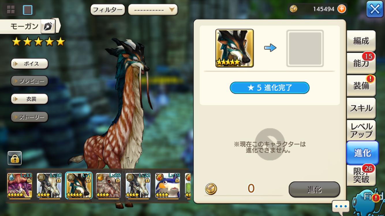 思えば、キリンの☆5が実装されてからもう丸一ヶ月以上がたった。それまではアニマなんて祭壇でしか手に入れられなかったから完全に0個からのスタート。オカヤドカリはすぐに意地で進化させたのだけどもキリンは根気勝負だった。テイム率アップのアイテムを使えばもしかしたらもっと早かったかもしれないけど、どの道、妙な祭壇縛りなんて課してたから変わらないか、、、次の進化からは祭壇を使う予定だからもっと早く集められるハズ。