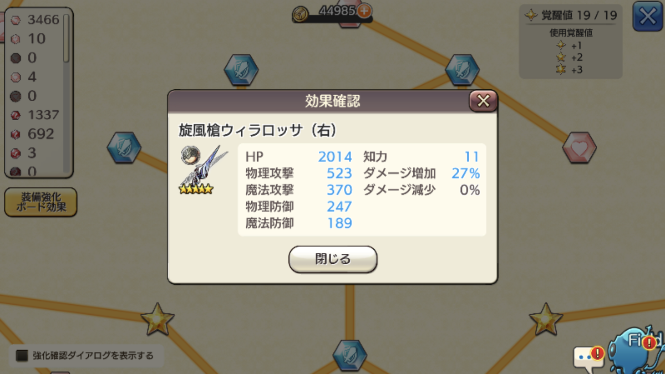 なので、キャラに装備させているものだけ覚醒値があがる訳では無いのでご注意を、、