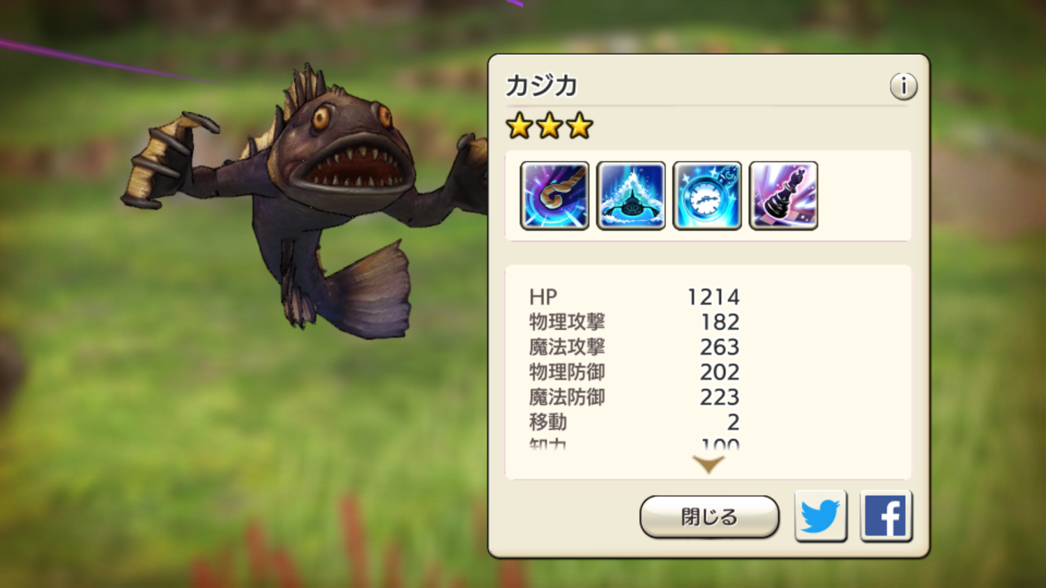 昨日だけでも★3のバタフライ2体、カジカ2体、キンギョ1体をさっくり仲間に出来たので、徐々に捕獲率上昇系は不要になりつつあります(リーダースキルも石ボーナスもなし)