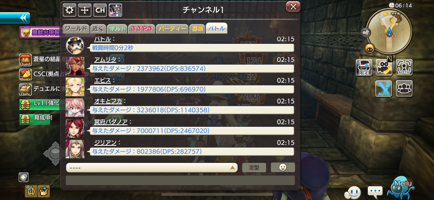 オキフカ冥府がレベル50、ジリアンに今回は物理火力でエビス49、あと単純に経験値欲しいアムリタ編成。