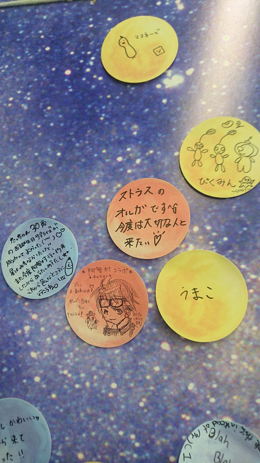 丸いお月様の付箋が置いてあって、自由にコメントを残せるようになってました。