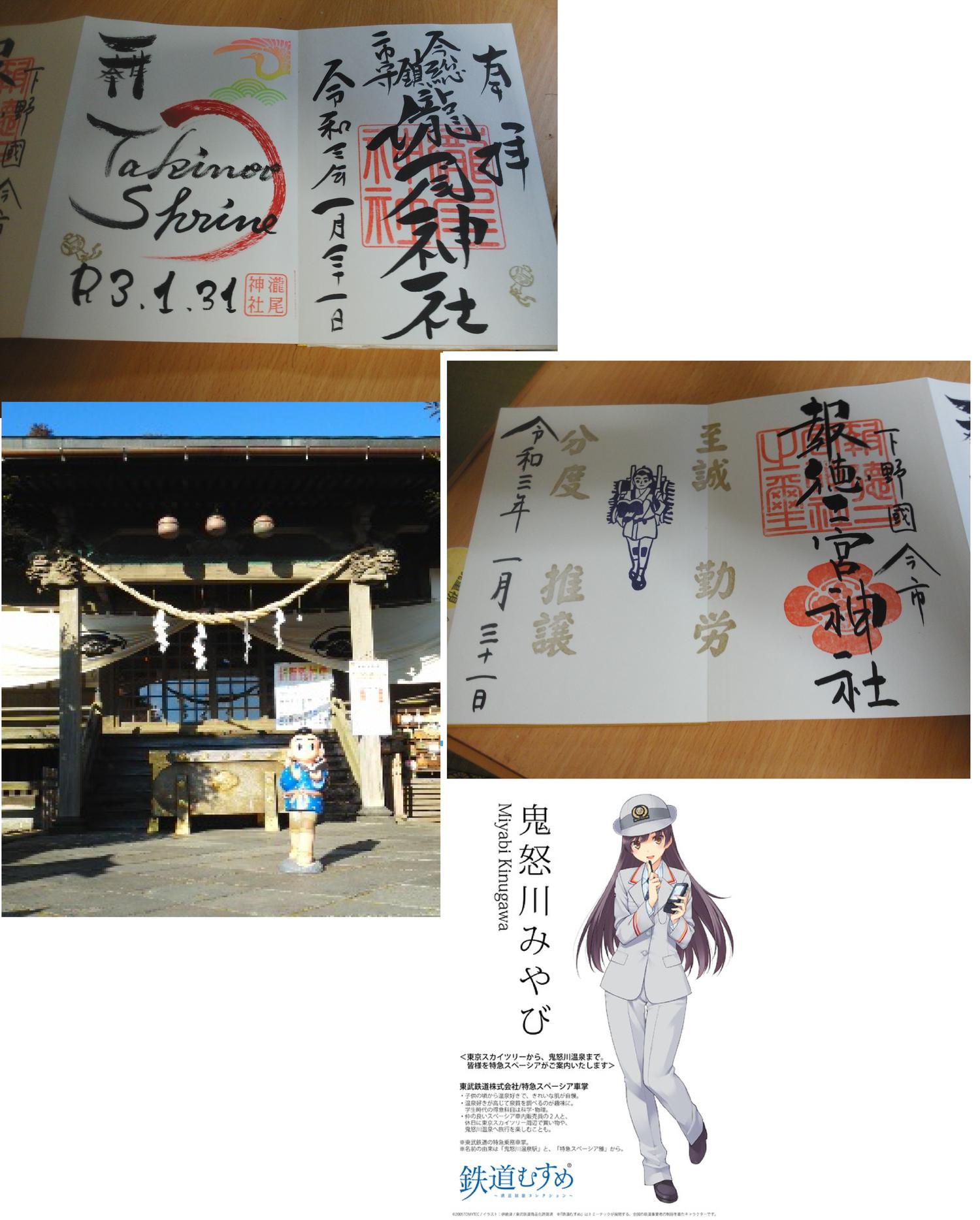 飲食店も土産物屋も軒並み開いていません。迎えてくれるのは鬼の像と鉄道むすめの鬼怒川みやびちゃんのみ。超絶☆疎です。
