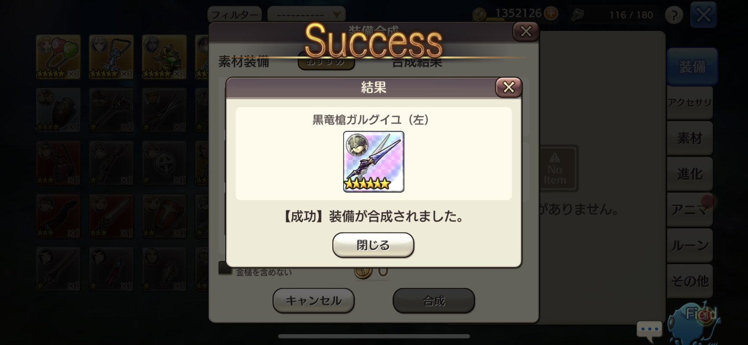 星6装備…全く成功せずに王様のメインサブ作り上げた身としてはあまり期待せずエミリーサブを選択してポチッ