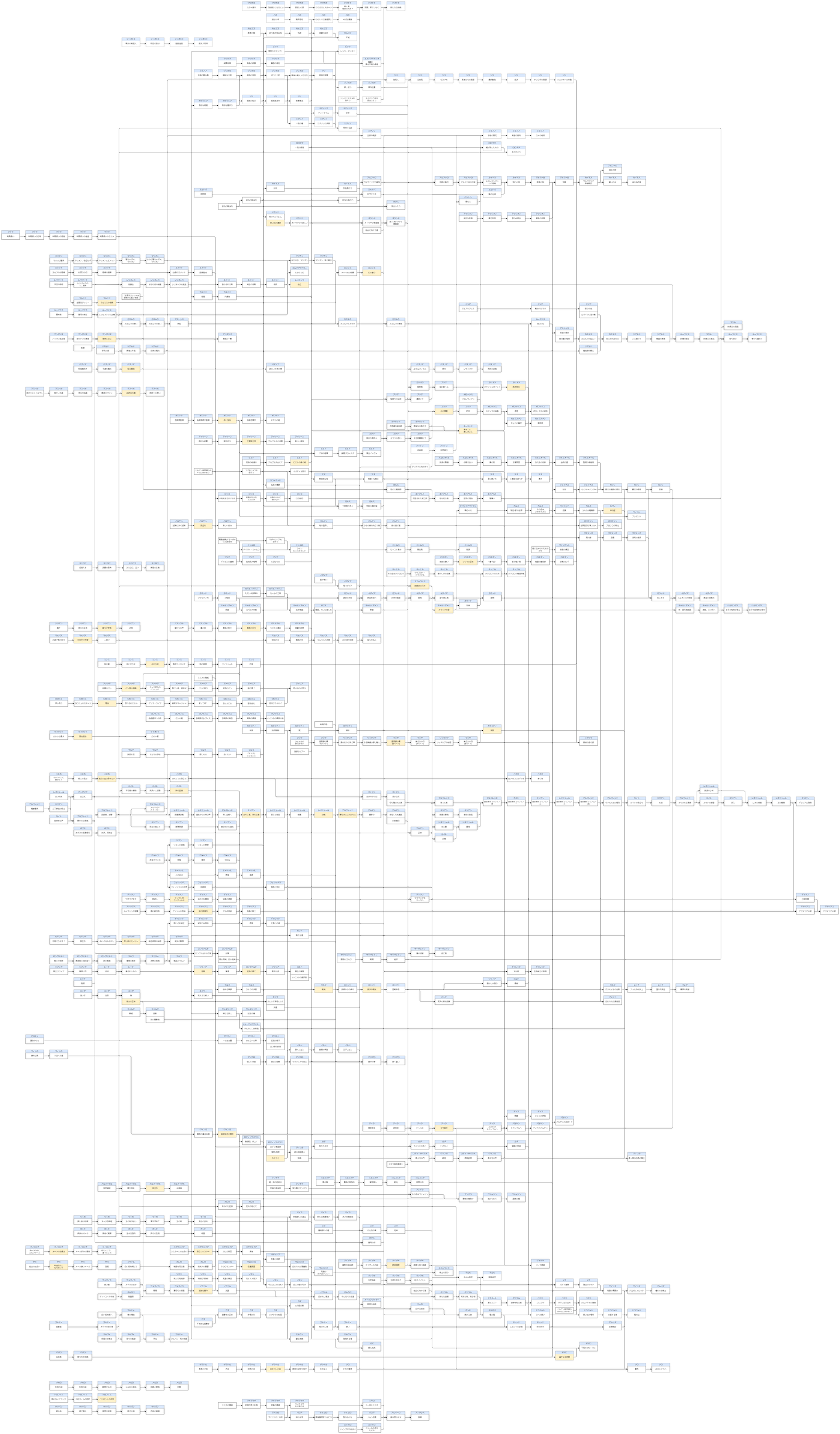 半年くらい前、周年の頃にキャラストのストーリーの前提条件を全部繋げたフローチャートを作ってたのを唐突に思い出した。なんで思い出したかはいまいち分からんけど、せっかくだし付け足してみようとアプデ情報をさかのぼりつつ追加してみた。で、そんなこんなで弄ってると配置がこうした方がよくね?というのがちょくちょくあって、想像以上に時間がかかってしまった。半年といっても、週に0~2人ずつだし、全部合わせてもそんなに数はいないから、やるまえは1時間もかからない予定だったのに、実際には半日以上ずっと触ってることになってしまった。