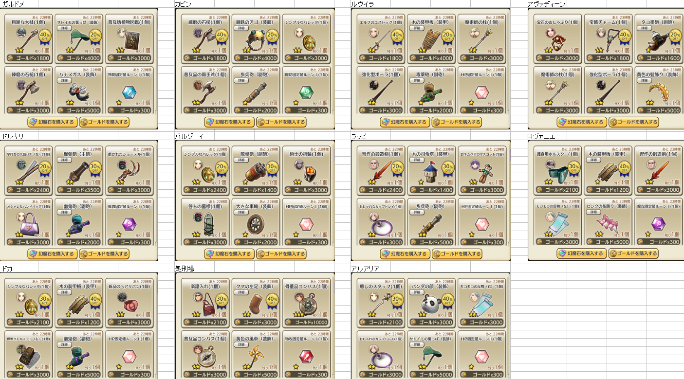 7/23 装備商人一覧
