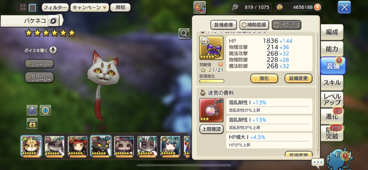補助装備はメインサブ合計で10枠ほど☆4装備はめてます。