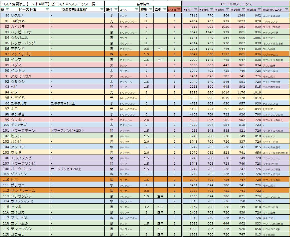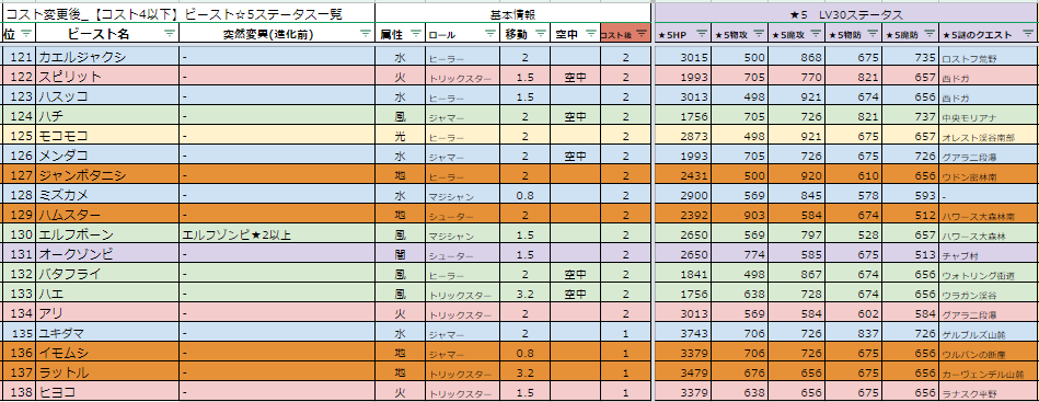 ・計算で算出しているビーストもいる為、実物と異なる場合があります(誤差10以内程度)