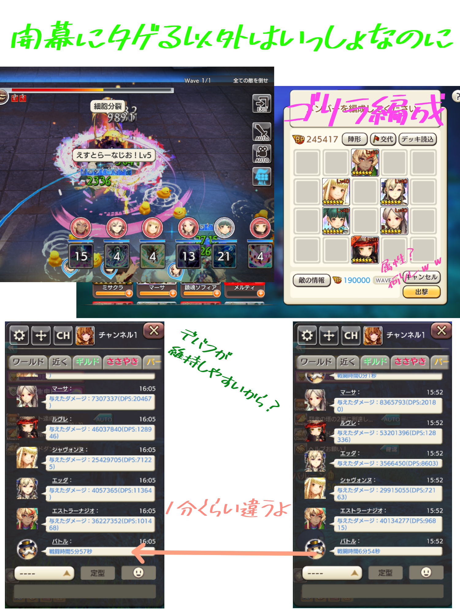 今回は開幕時に本体をタゲった時とタゲらない時を