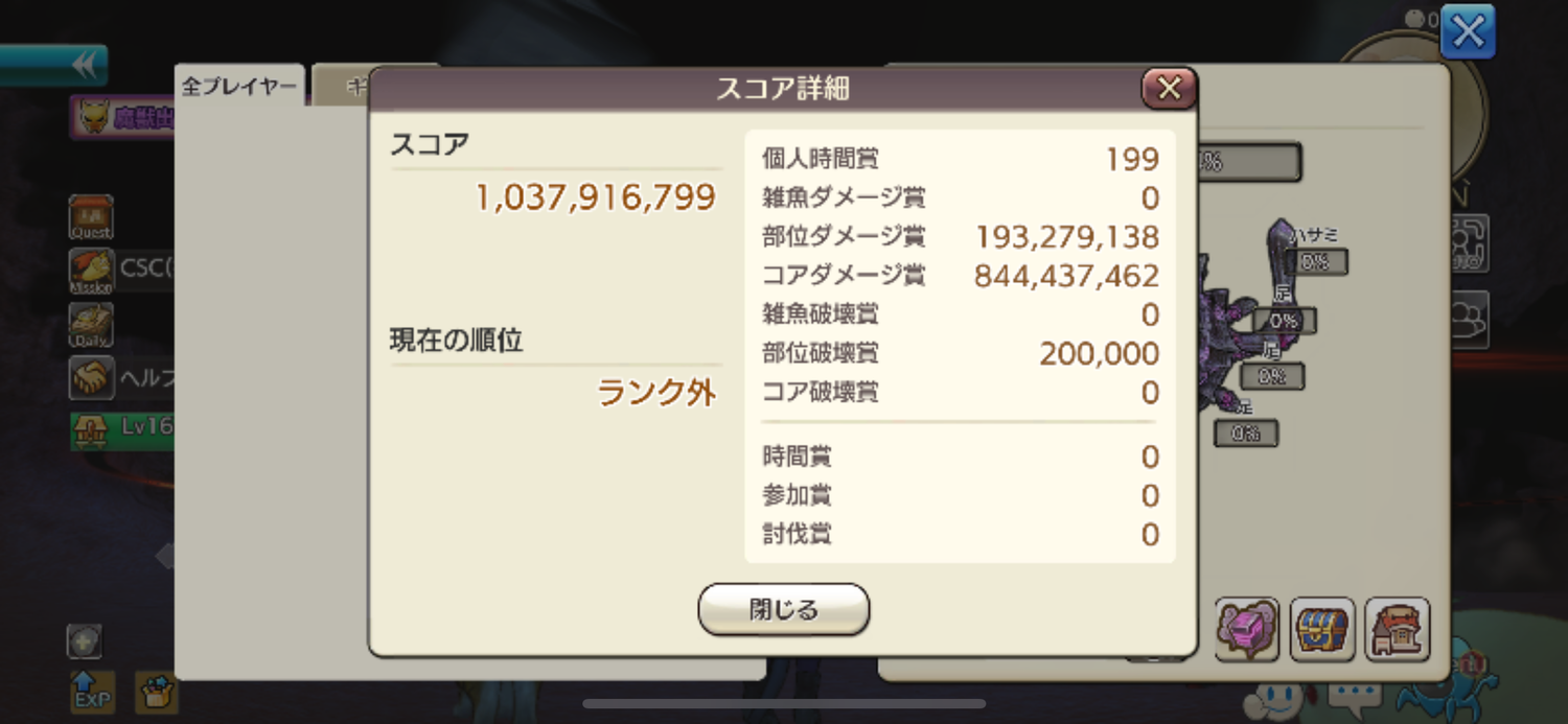 ついでに先日初めてカニサンレイドのスコア10億達成しました。