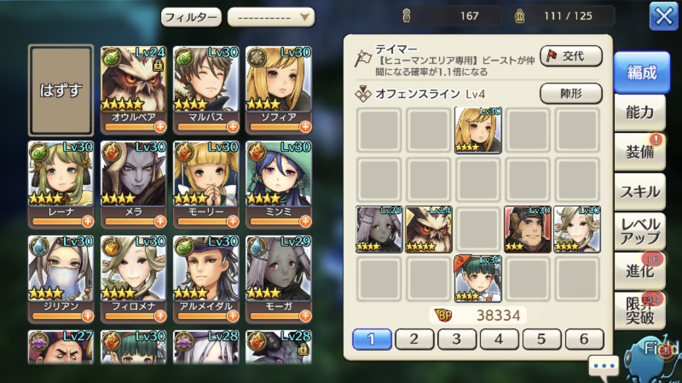 ライオット、ノーマークでして、☆3Lv.30で止まったまま、アニマも溜まっていません。