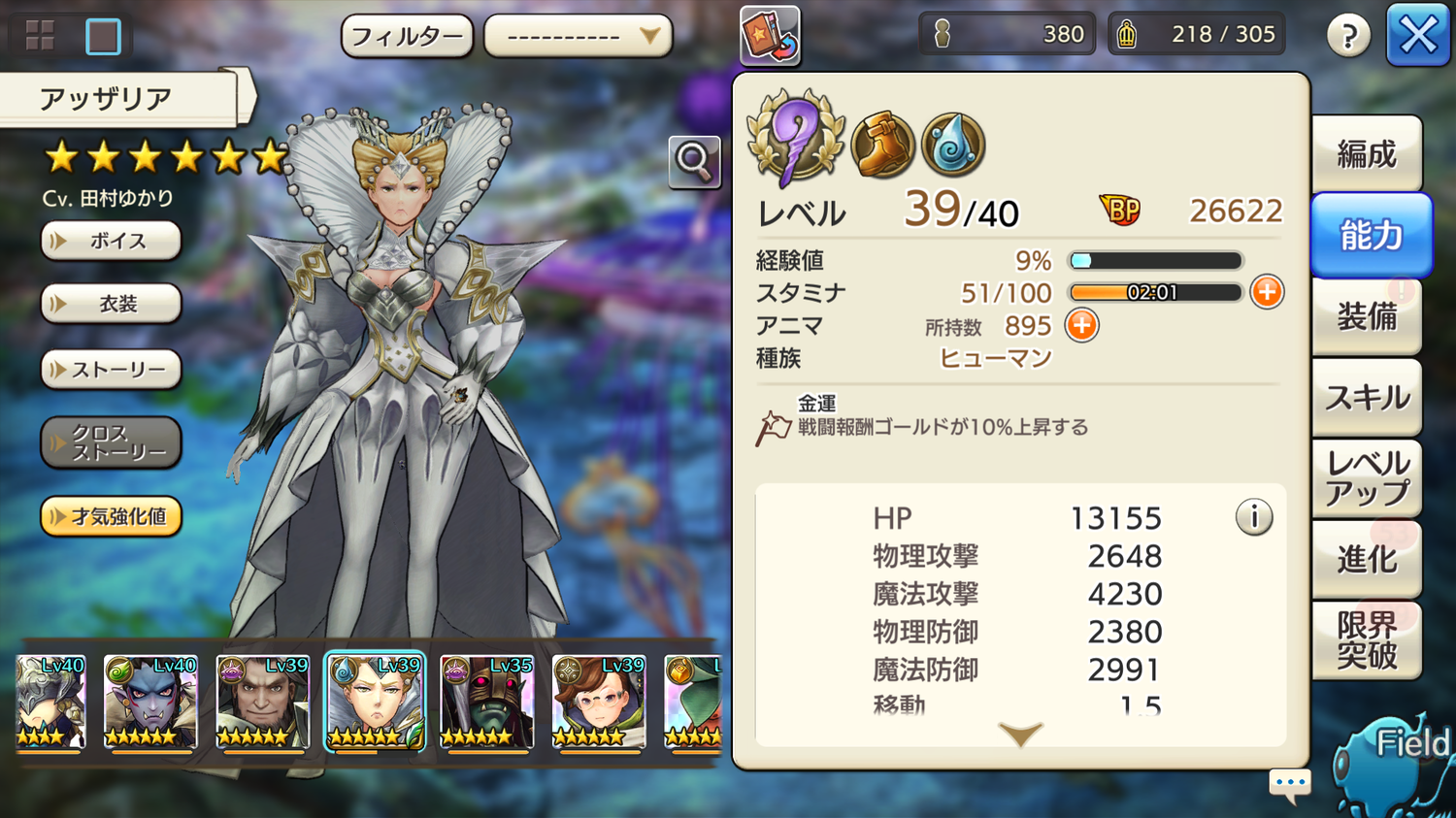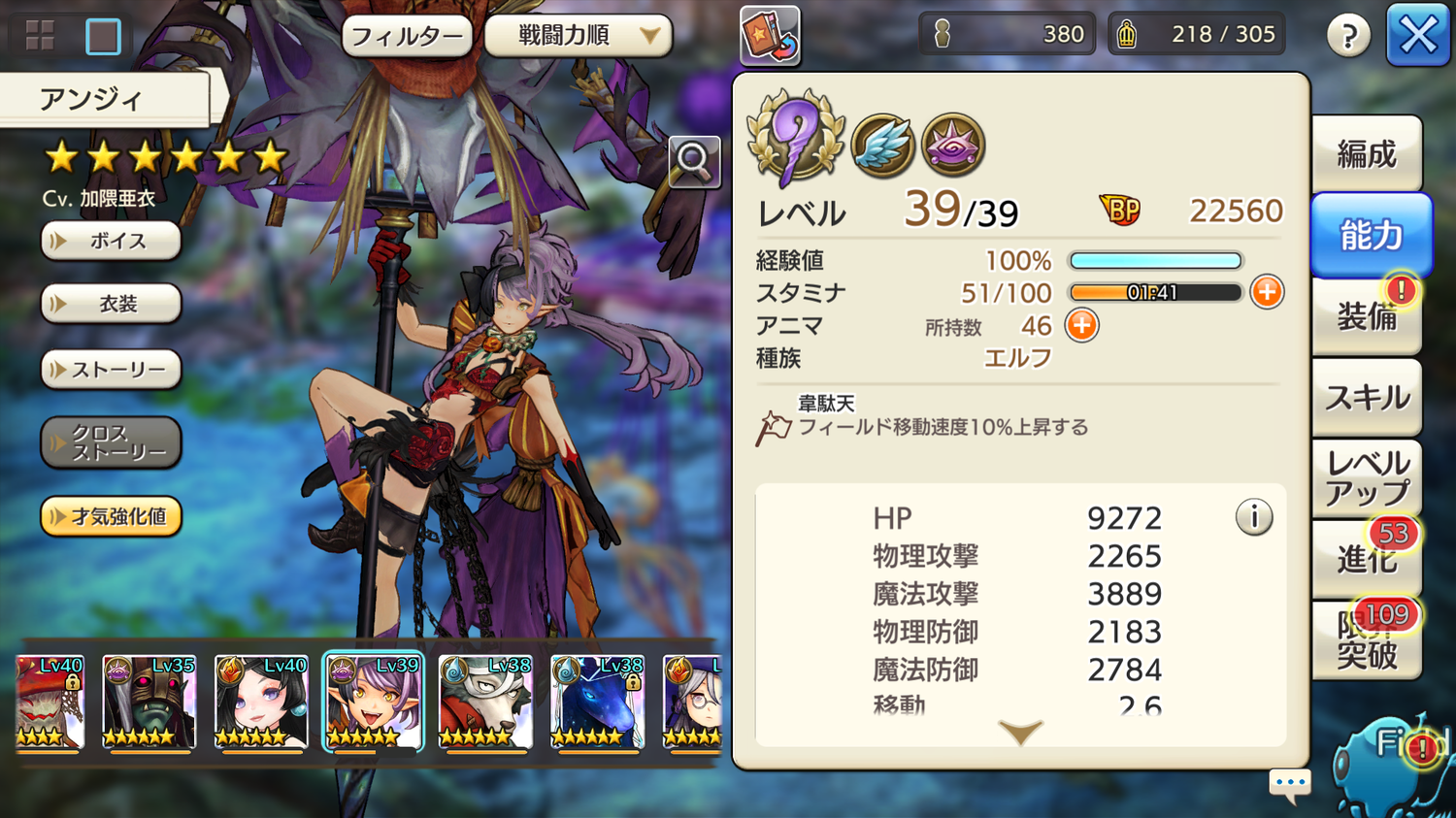 ②39K記念アンジー。装備の関係か攻撃力が4000に届かない・・・・仕方がないね。