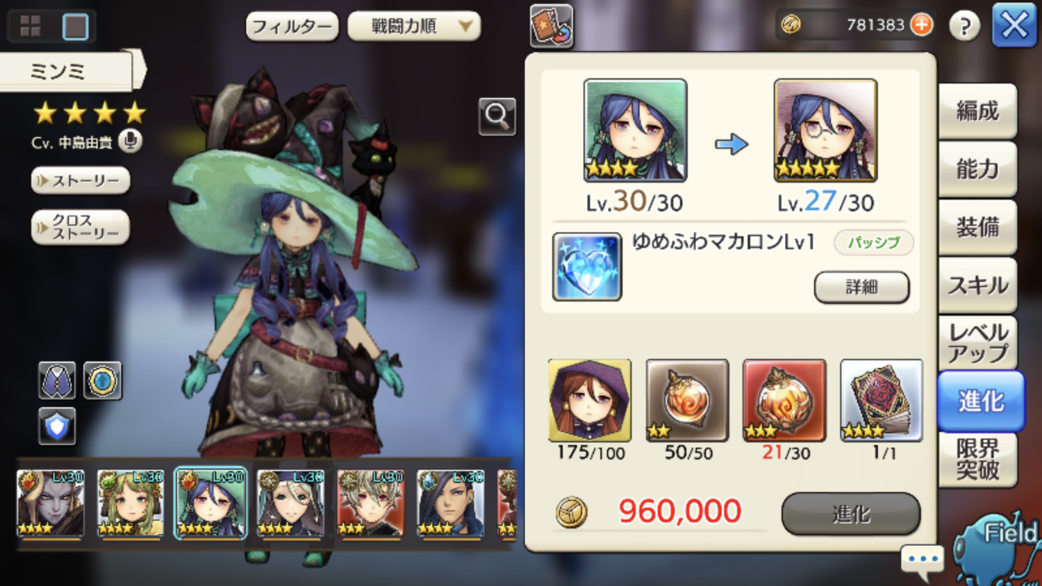あ、ミンミ★5は個別の進化素材手に入ってるのか!