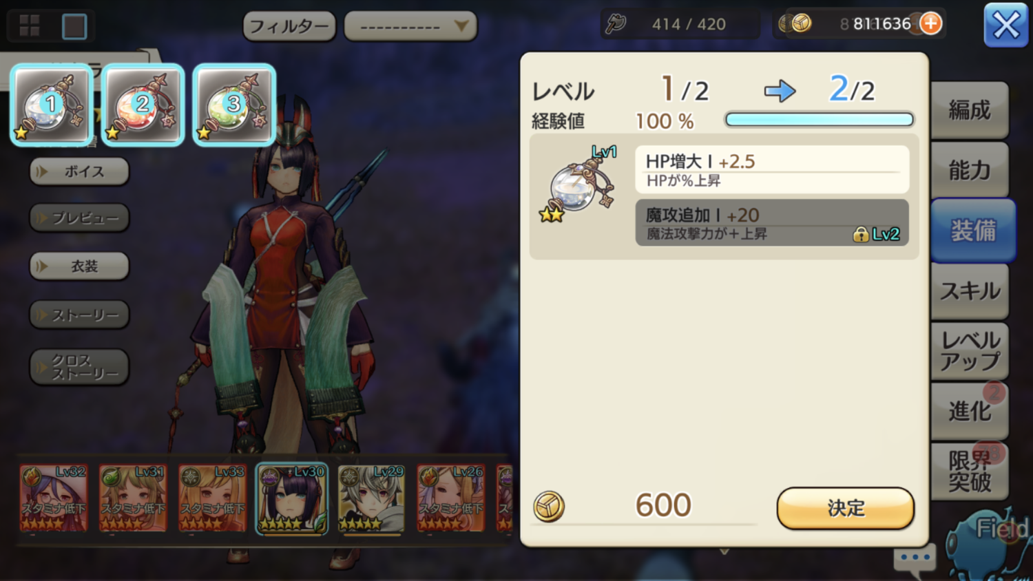 星2以上ならステータス1個目だけ反映。2個目は解放しないと反映されません。