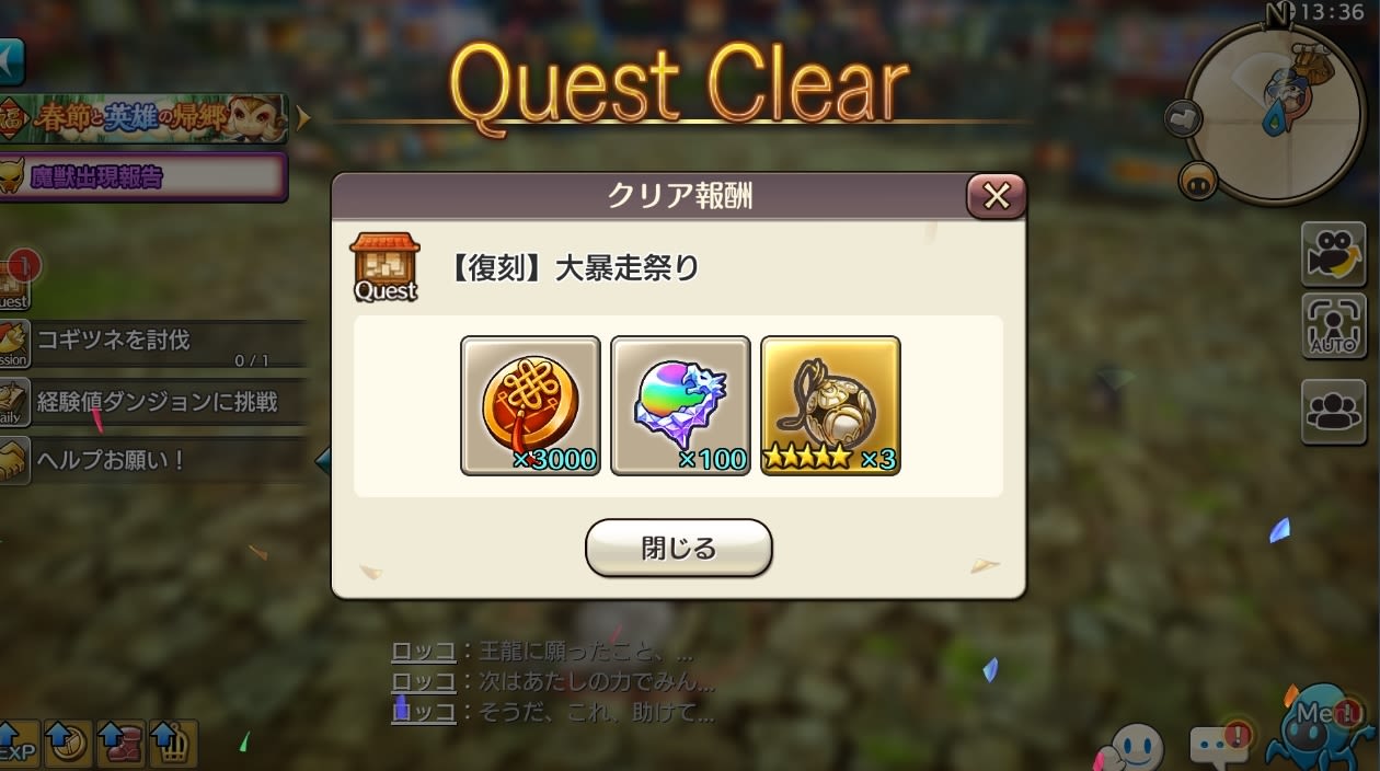 2019/02/11 22:08 公開 ロッコマラソンクリア!! 雑日誌 初心者 攻略 ロッコマラソンクリアできた記念 の初日記です!(`・ω・´)ぐるぐる回って5週目で倒しきれました。長かった・・・とはいえ、なんだかんだで2分残し位でした。 PCで左手でキーボードの十字で画面動かしながらマウスでキャラ移動。イソガシイソフィアがロッコのノーマルスキルを掠ったときは生き残るのでパルヤンで保険かけつつ火力バフ盛り作戦でなんとかなりました。以上! しかね リンクをコピーしました 前の旅日誌 旅日誌一覧 次の旅日誌 コメント