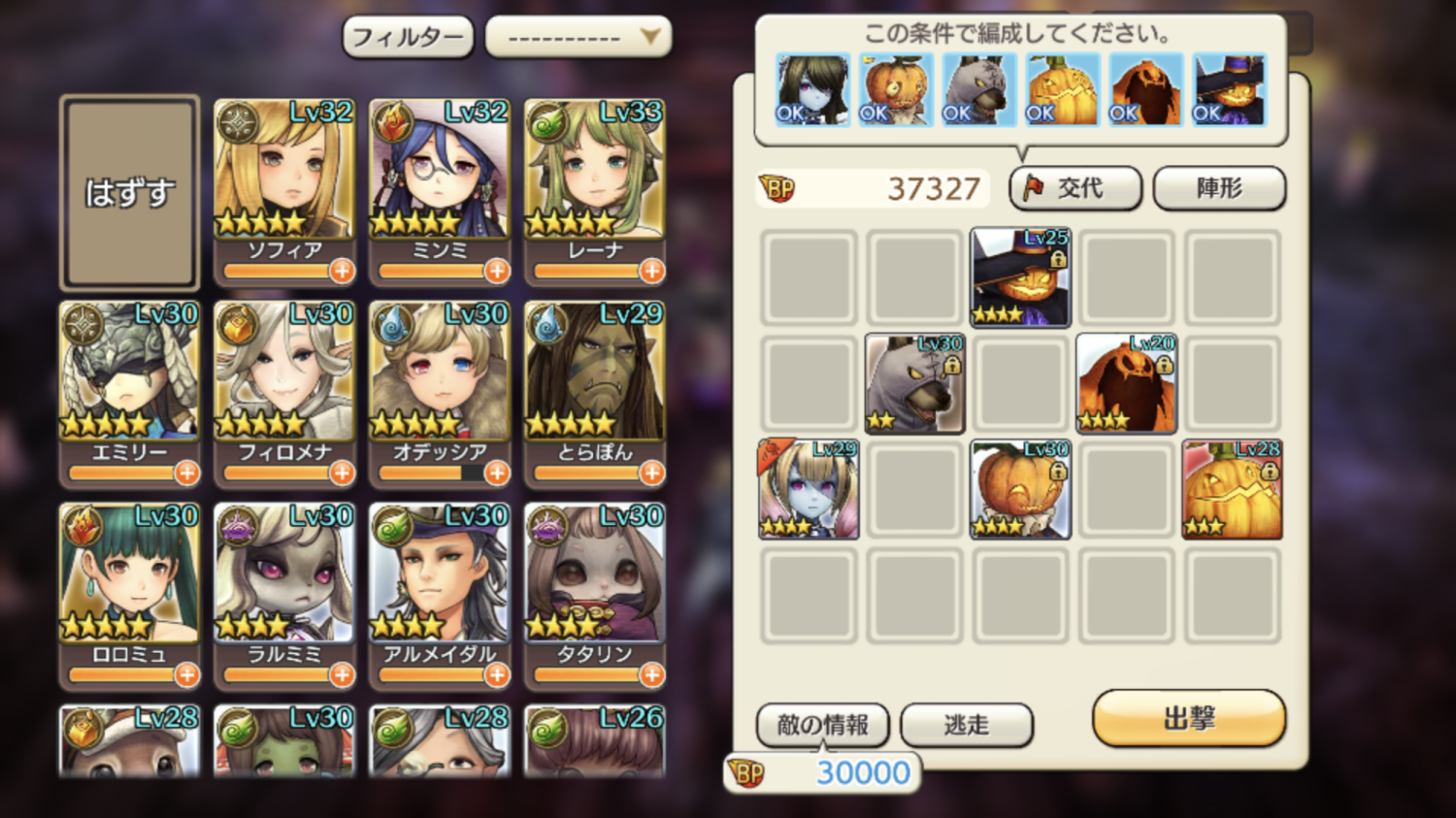 トモサレトルの捕獲が面倒くさくなりハロウィンポイントで交換し、装備補強と少し育成してから挑戦しました!