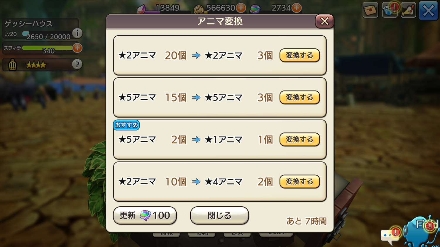 わたしは ★5アニマ 2個 を ★1アニマ 1個 への変換は嬉しくないです