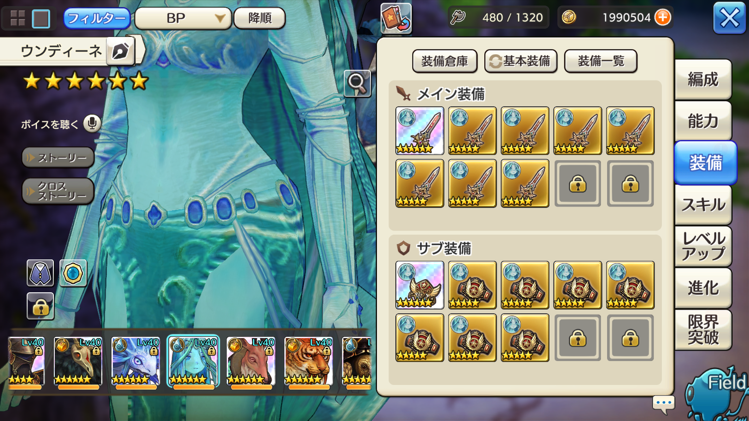 装備はそこそこ、スキルオール4L、アクセサリーは物攻増大+10%