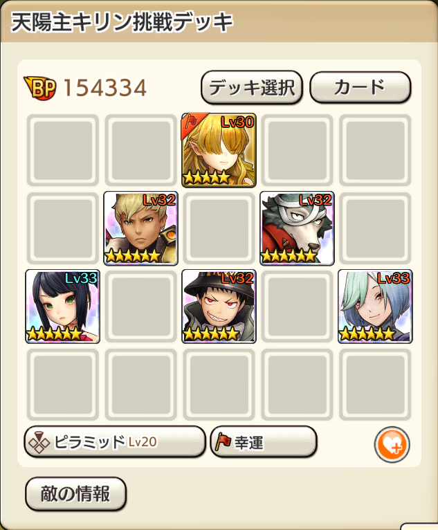 天陽主キリン中級ソロクリアできたときのデッキはこんな感じ。