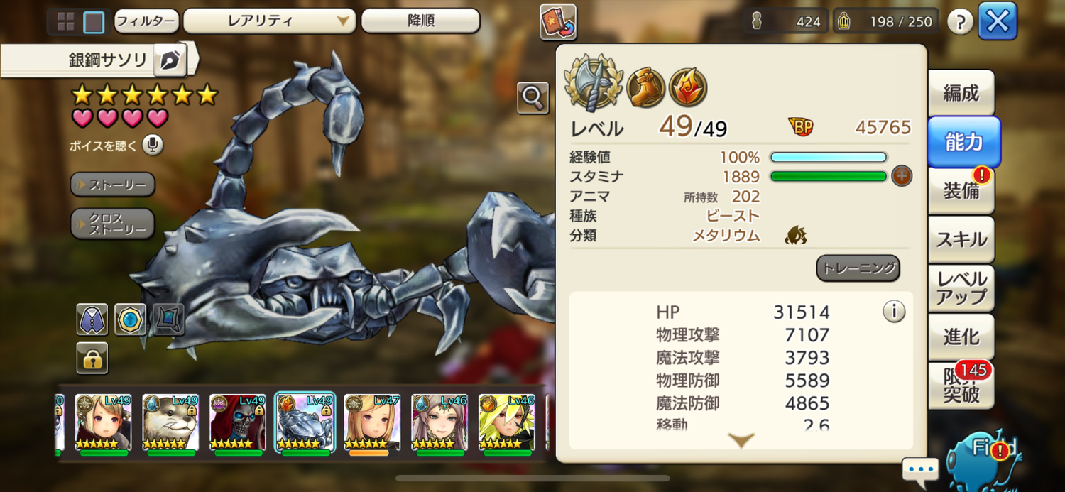 ついでにメタビアチブで残ったサソリレベル50が間も無く終わります。