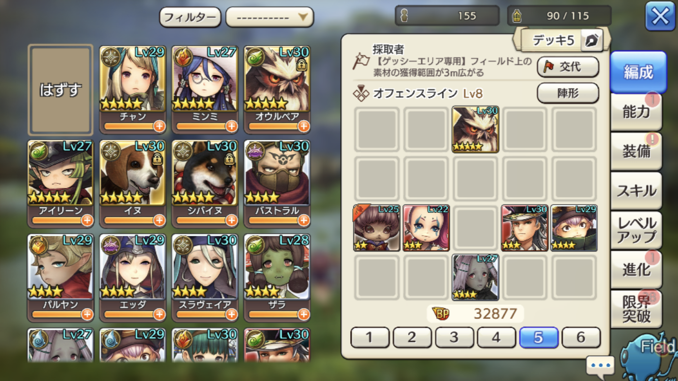 ・先頭…オウルベア(星5Lv30/メイン星4ダメ増10%・サブ星2/N3・A3・地属性有利3)
