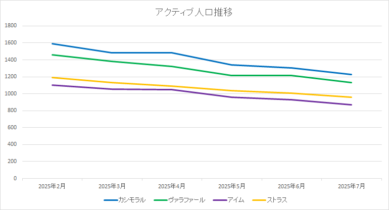 こちらの統計は一カ月以内にログインしている人に限られますので、おっしゃるように平均取ると実質2000人台なんでしょうね。