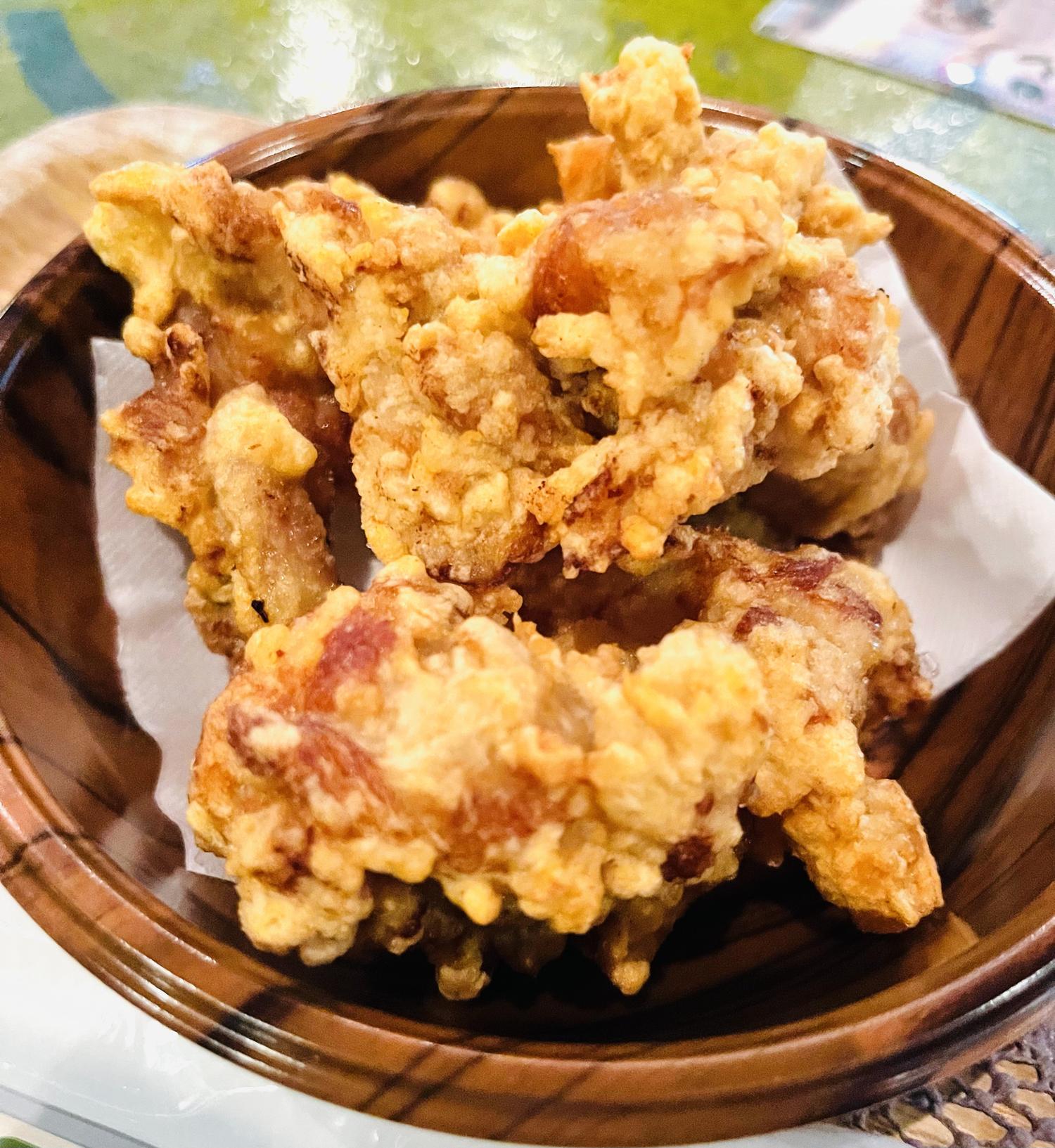 聞くところによると魚介系のお出汁を入れた唐揚げとのことで(聞き間違いだったらゴメン)、ちょっと変わった味付けに納得しました。