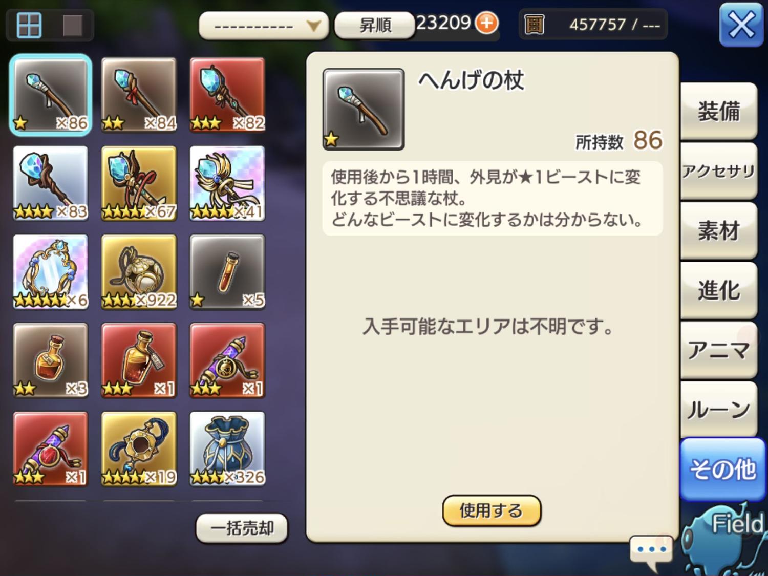 2021/12/07 11:46 公開 ゲーム性には一切影響しない話 雑日誌 ギルドメンバー募集 スクリーンショット 気が付くと、けっこう貯まってるアイテム。変化の杖。この変化の杖を、変化の鏡に合成する機能が欲しいです。相場は…杖10本で鏡1枚くらい? ルル リンクをコピーしました 前の旅日誌 旅日誌一覧 次の旅日誌 コメント 1 ひろびん ID: 58v8ch4i6g65 使い勝手がよくないですからね( ´-ω-)σ 2021/12/08 08:43