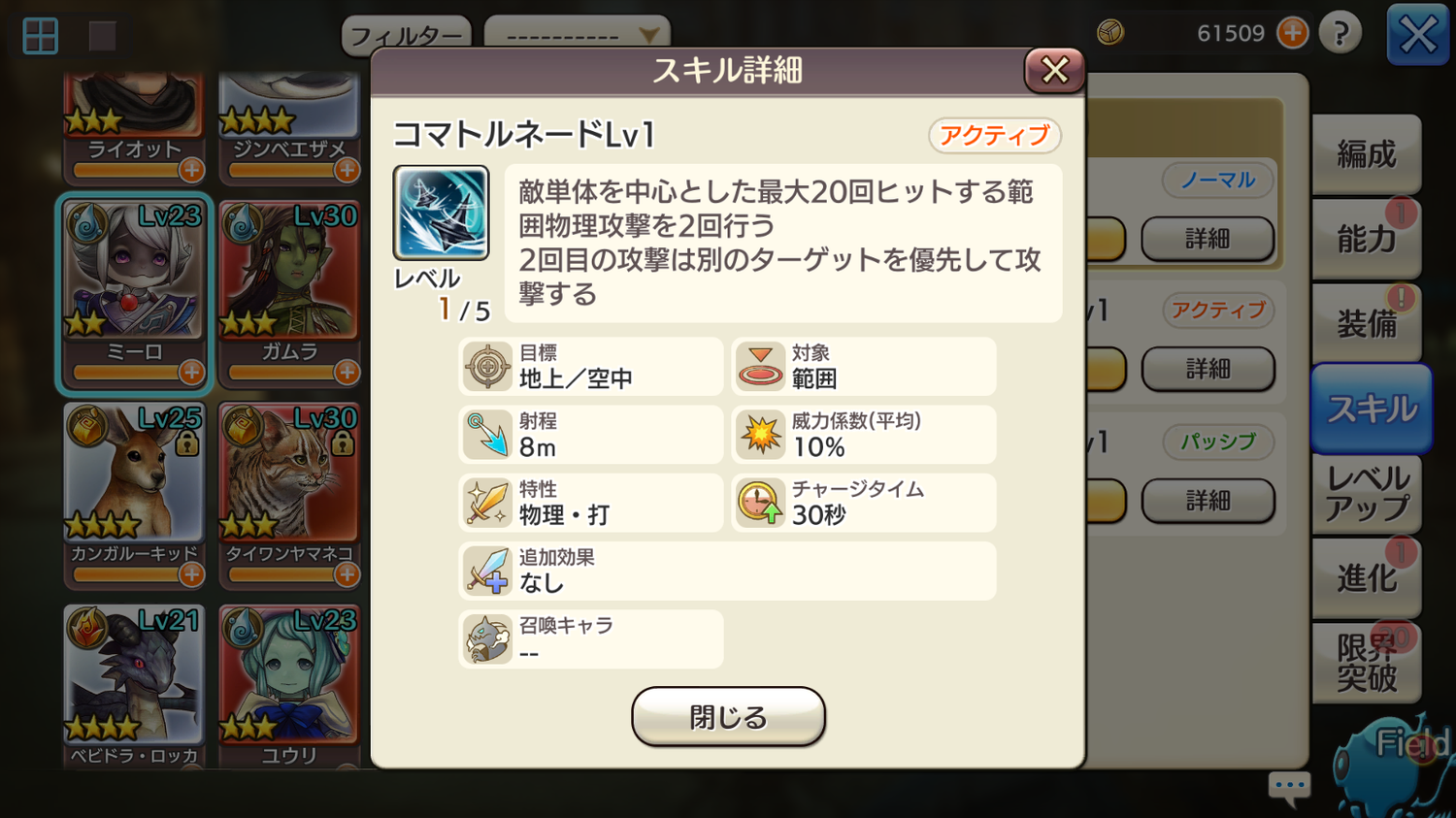 2018/11/28 19:38 公開 ロマンコマ娘(※多段20HIT娘) ちょっと何これ・・・最大20HITの範囲多段、しかも地上/空中ってどういうことなの(ただしCT30sec)・・・。そして私はなぜサブの方を引けなかったの・・・。無限コンボが華の多段ヒットパーティには組み入れにくいかもしれませんが、「私は行けない」全てが1ダメになるHIT数勝負ダンジョンには連れていくと活躍したりしなかったり・・・するんでしょうかね。 エレノア リンクをコピーしました 前の旅日誌 旅日誌一覧 次の旅日誌 コメント